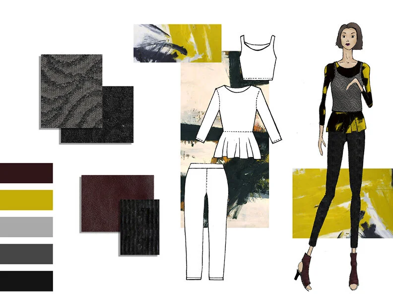 This was a collection of work I did in University. I compiled my mood board and fabric swatches to inspire the pieces I drew. I drew out the flats in Illustrator or by hand, and rendered the fashion illustrations in Photoshop.
